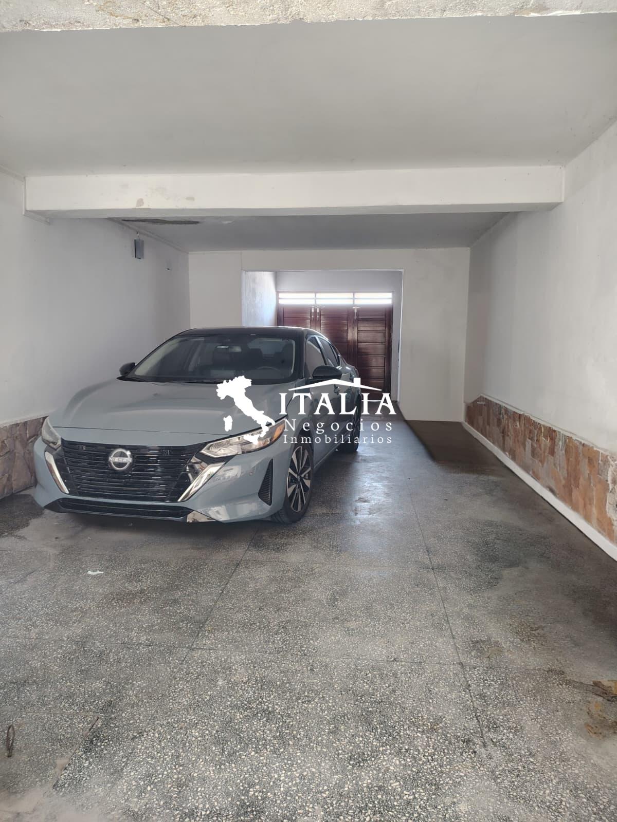 Cuenta con un frente con jardín y garaje para 3 vehículos.
